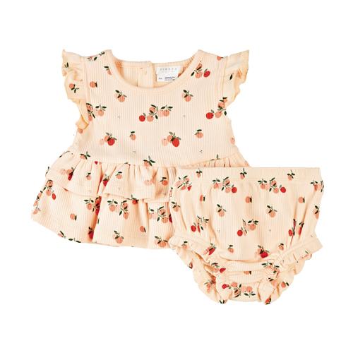 - Agrumes Print on Barely Coral Ribbed Outfit Set – $40