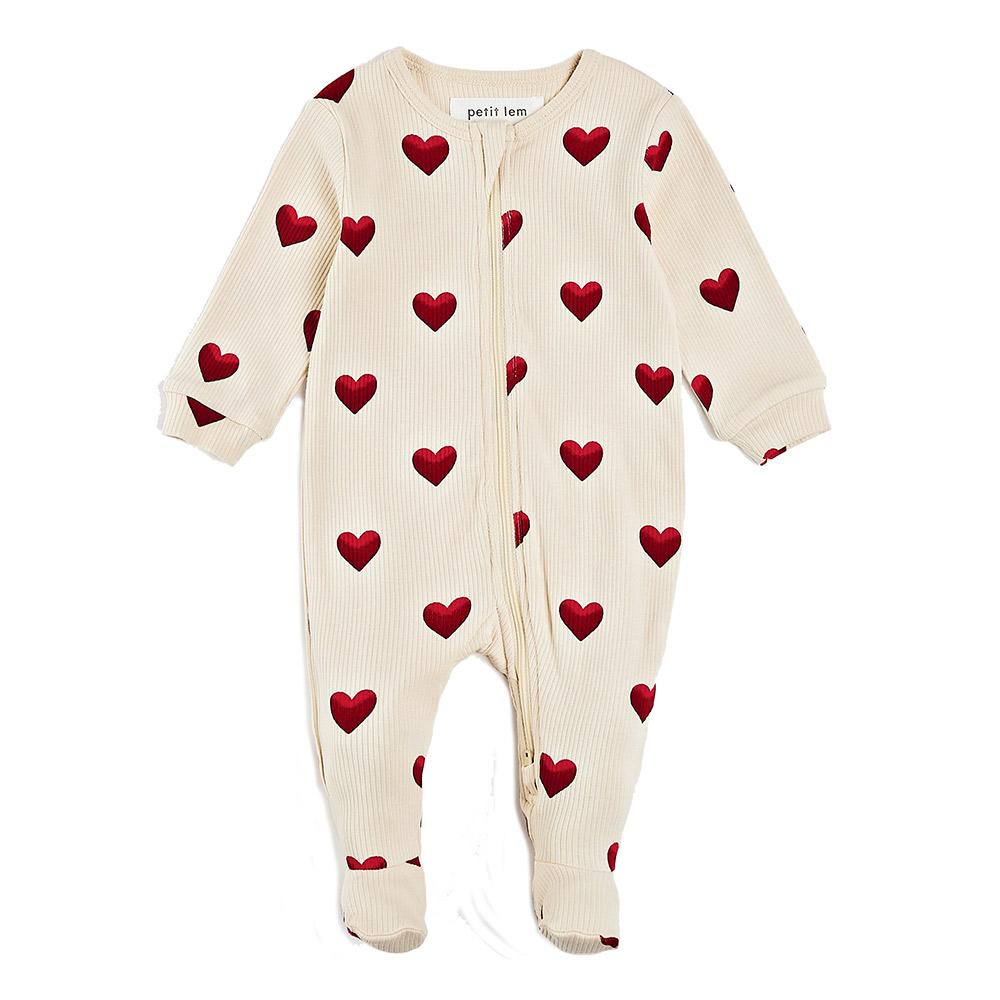 5. Heart Print on Ribbed Antique White Sleeper – $32.00