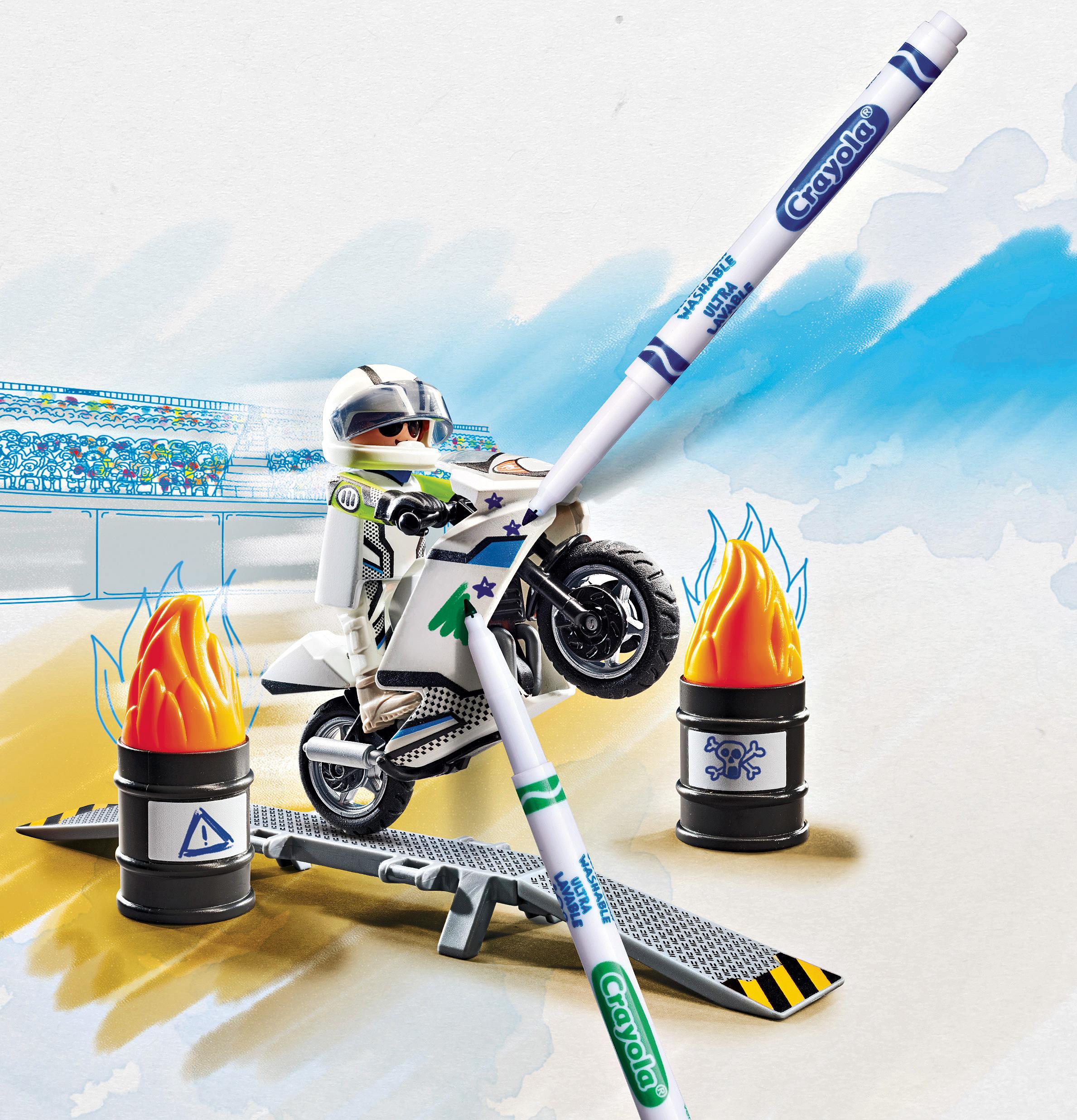 Playmobil Colour is a creative line that allows kids to personalize their playsets using washable markers. The sets include white-coated figures and accessories that can be decorated and redesigned repeatedly. Kids can colour their characters and objects, wipe them clean, and start fresh with new designs. This encourages creativity and artistic expression while maintaining the fun of classic Playmobil play.