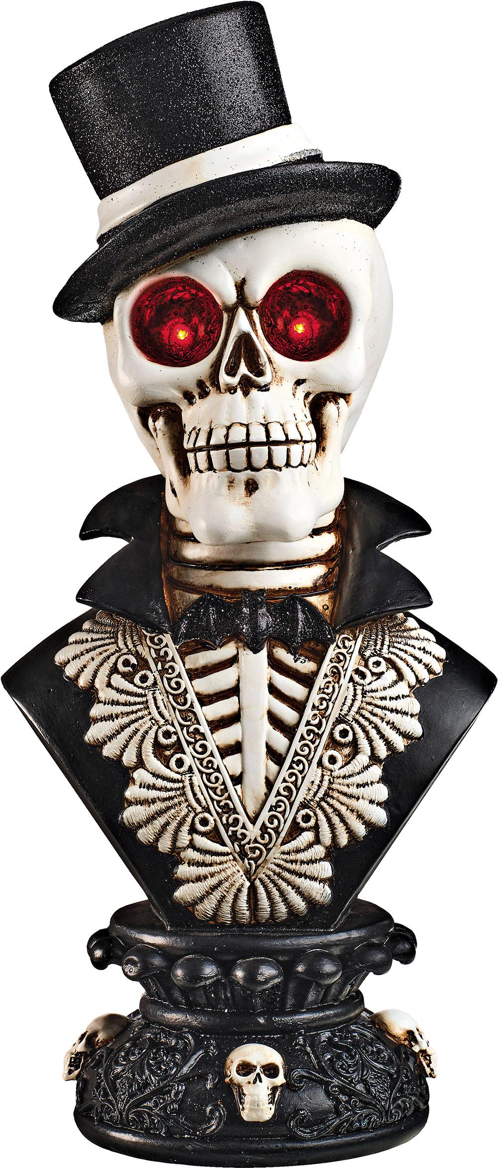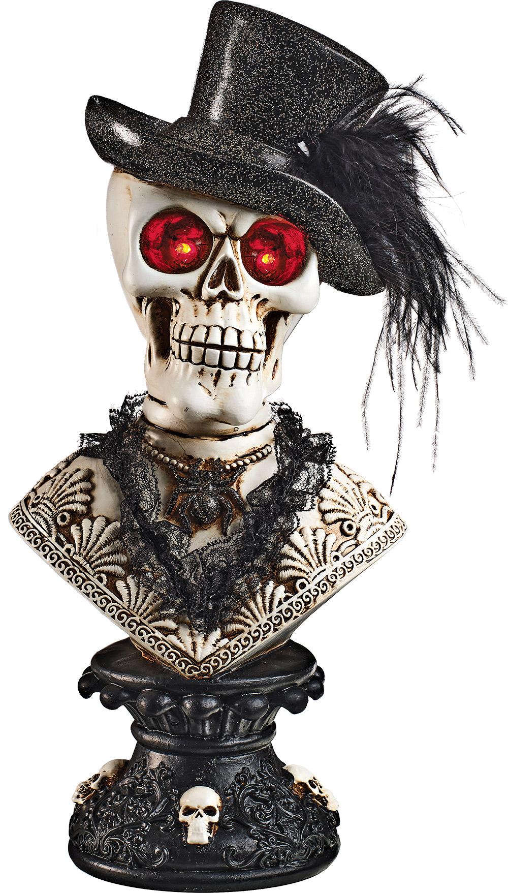 Make your home extra spooky this Halloween season with one of these 16-inch skeleton busts on a pedestal with LED eyes that is sure to frighten your guests. $59.99